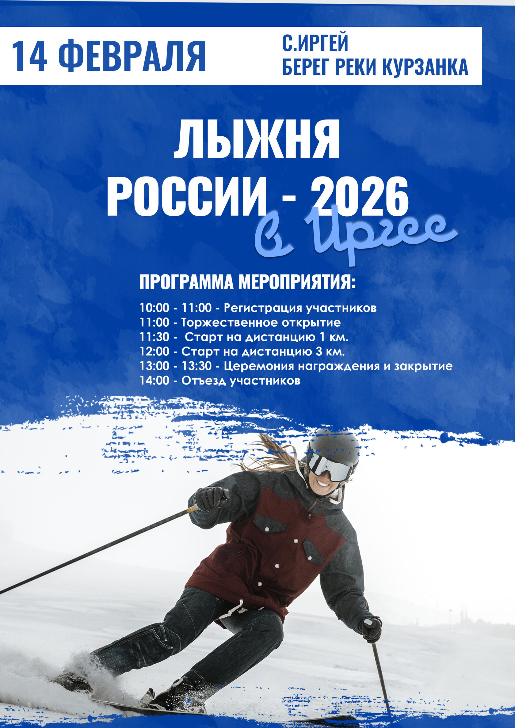 14 февраля на живописном берегу реки Курзанка в Иргее пройдет ежегодная всероссийская массовая лыжная гонка "Лыжня России - 2026". Это масштабное зимнее спортивное мероприятие, которое традиционно собирает любителей активного отдыха и профессиональных спортсменов со всего Нижнеудинского района.